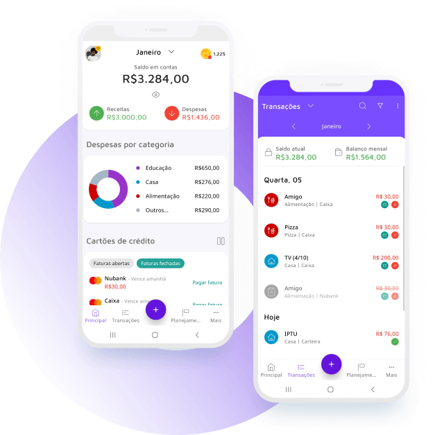 O Organizze se destaca por sua interface limpa e intuitiva, com foco total na organização. Ele é excelente para quem precisa de clareza e controle total sobre cada transação. O app oferece integração com o Open Finance, alertas de vencimento de contas e a possibilidade de criar limites de gastos por categoria. Sua simplicidade e eficiência o tornam uma ótima opção para quem quer se organizar sem complexidade.